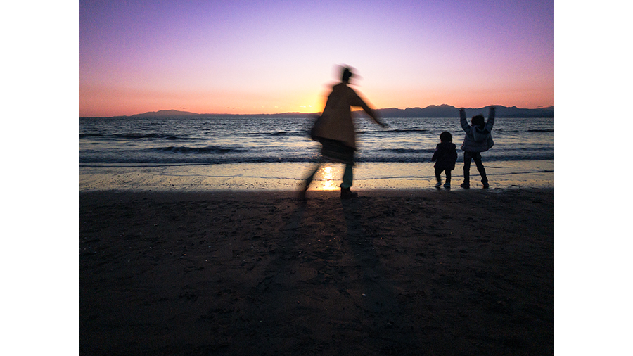 たったそれだけの作業ですが、空や海の色の濃度、浜辺に伸びる影の描写、太陽の輝きや反射、シャドウになった人物の立体感。どの部分も「こうしたい」というイメージどおり。