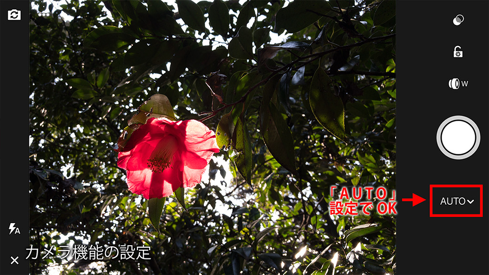 カメラ機能の設定は「AUTO」のまま。カメラで露出(明るさ)の調整も行っていません。