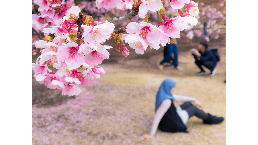 そこで、桜の花を画面の左上に寄せて、空いたスペースに人物を入れてみました。