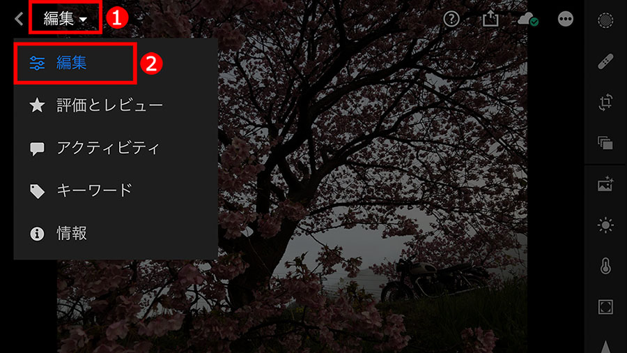 では、モバイル版のLightroomを使って桜の写真を仕上げていきましょう。