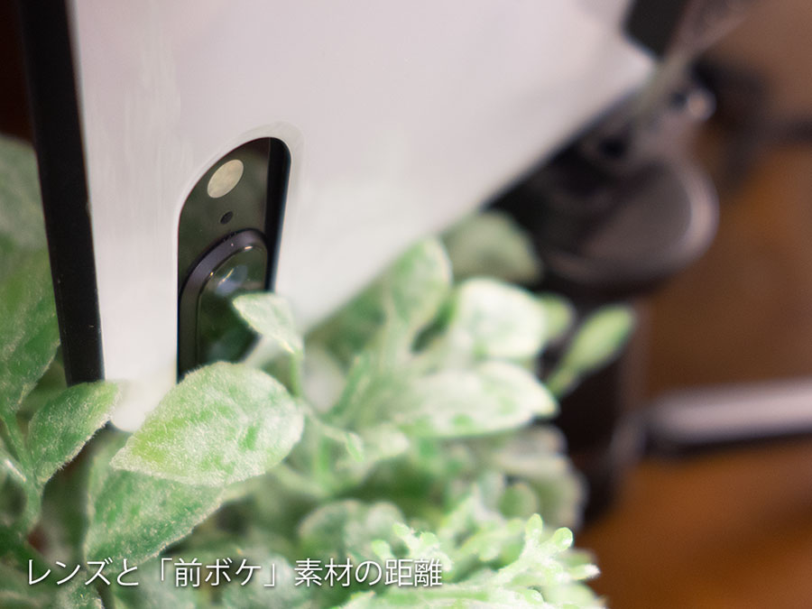 また、スマホのカメラに望遠レンズが搭載されているときは、「望遠側」で撮ると「前ボケ」が作りやすくなります。