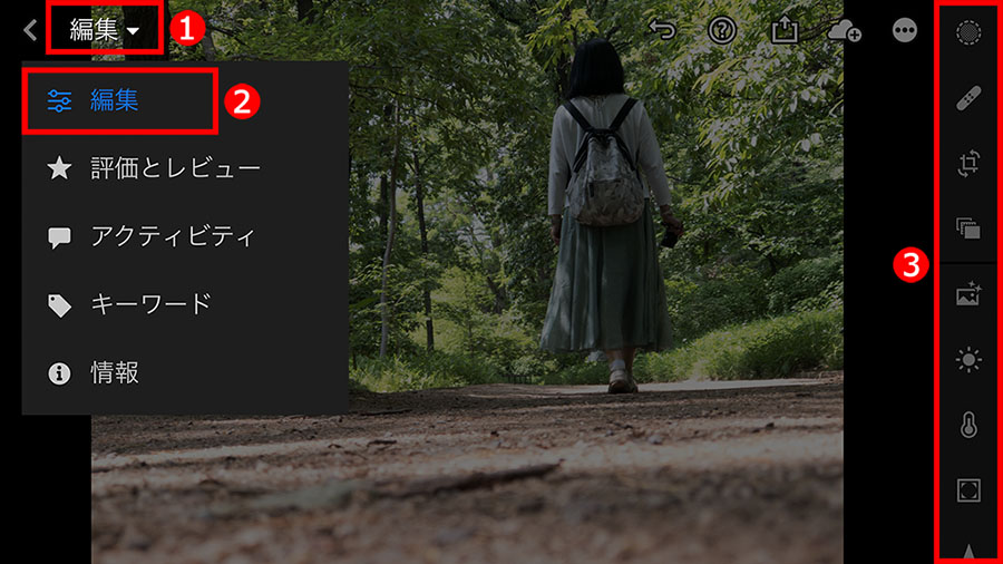では、モバイル版のLightroomを使って編集をはじめます。
