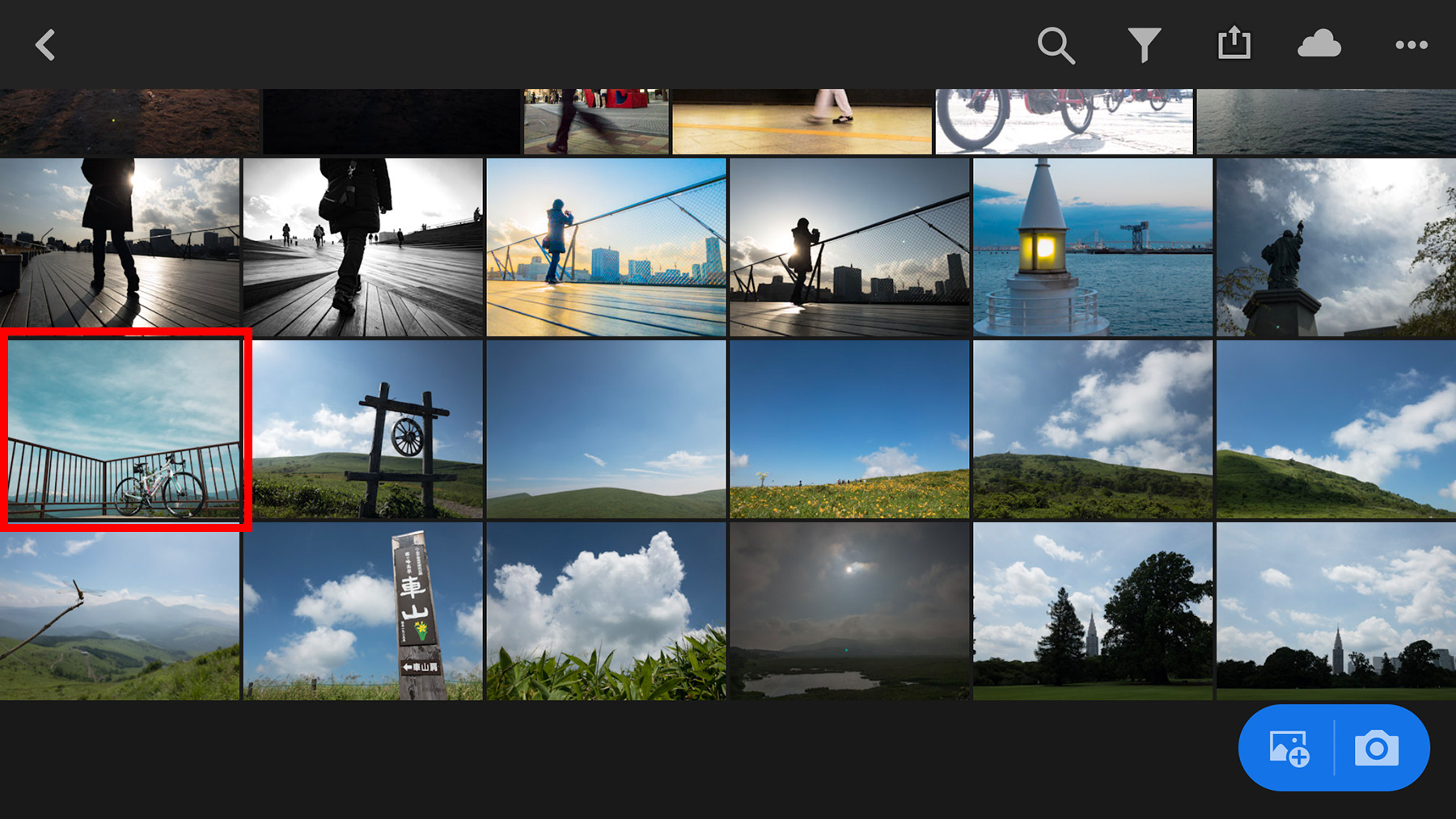 パソコン版Lightroomを起動すると、モバイル版で撮影した写真が自動的に読み込まれて表示されます。