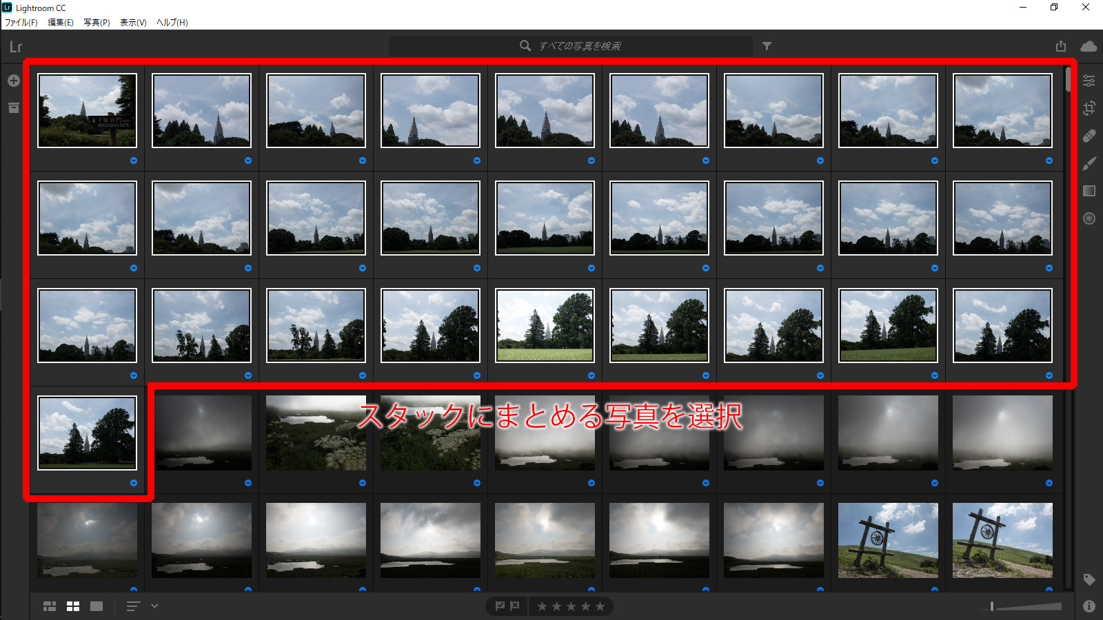 ただし、写真が増え過ぎると作業が面倒になるので、撮影から帰ったタイミングでスタック化しておくことが効率のよい管理の秘訣といえます。