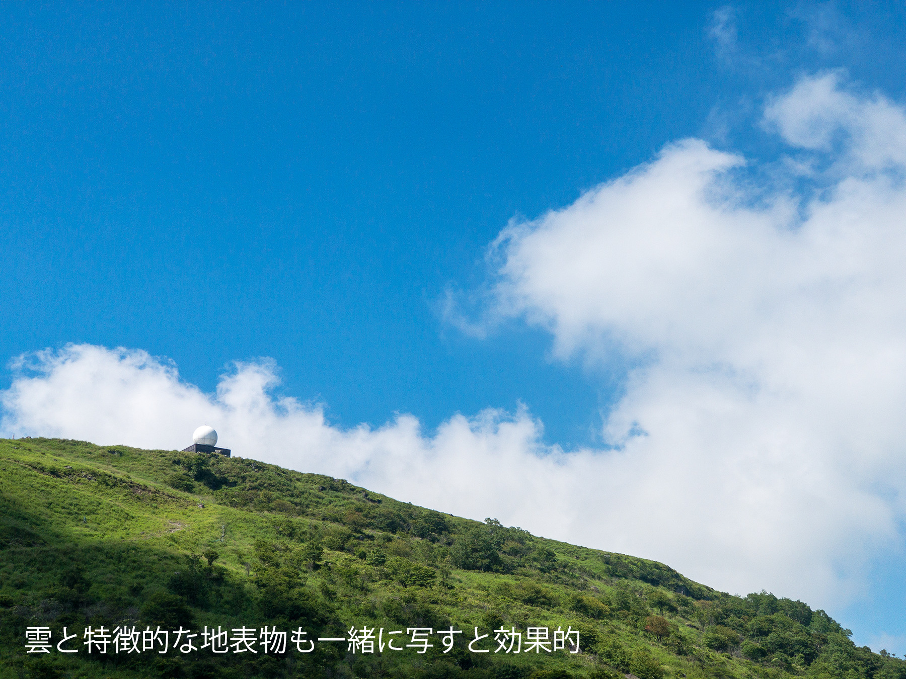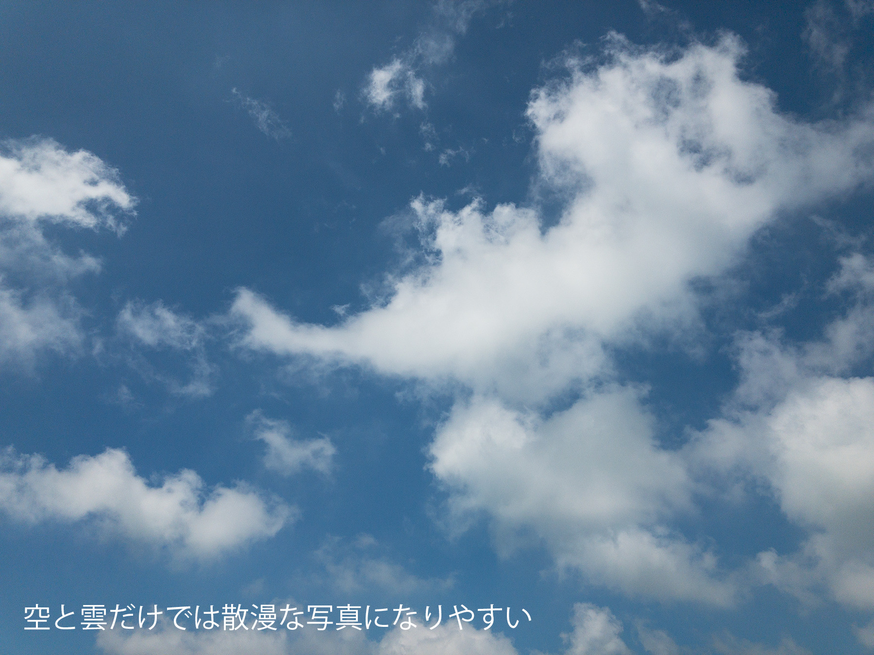よほど個性的で面白い形状の雲が浮かんでいない限り、どこに視点を定めればよいのか分からない散漫な写真になってしまいます。