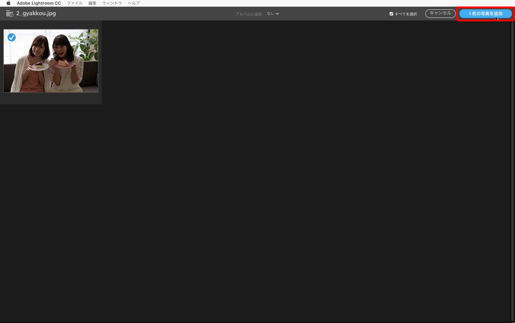 編集したい写真が選択できたら、右上にある[1枚の写真を追加]ボタンをクリックします。