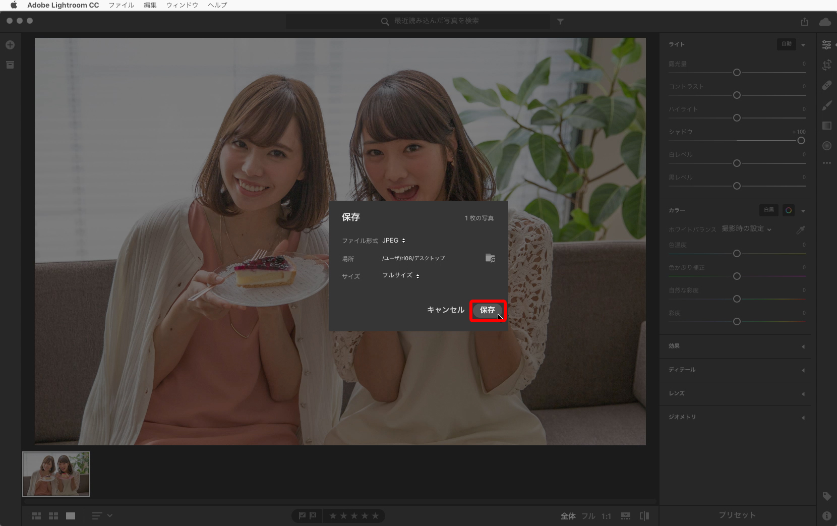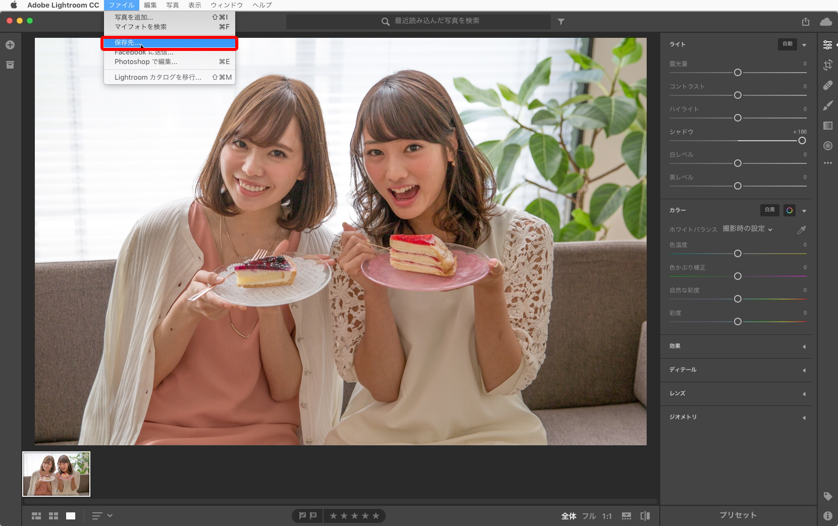 逆光で暗くなってしまった写真でも、Lightroom なら「シャドウ」のスライダーを調整するだけで明るく素敵な写真になります。