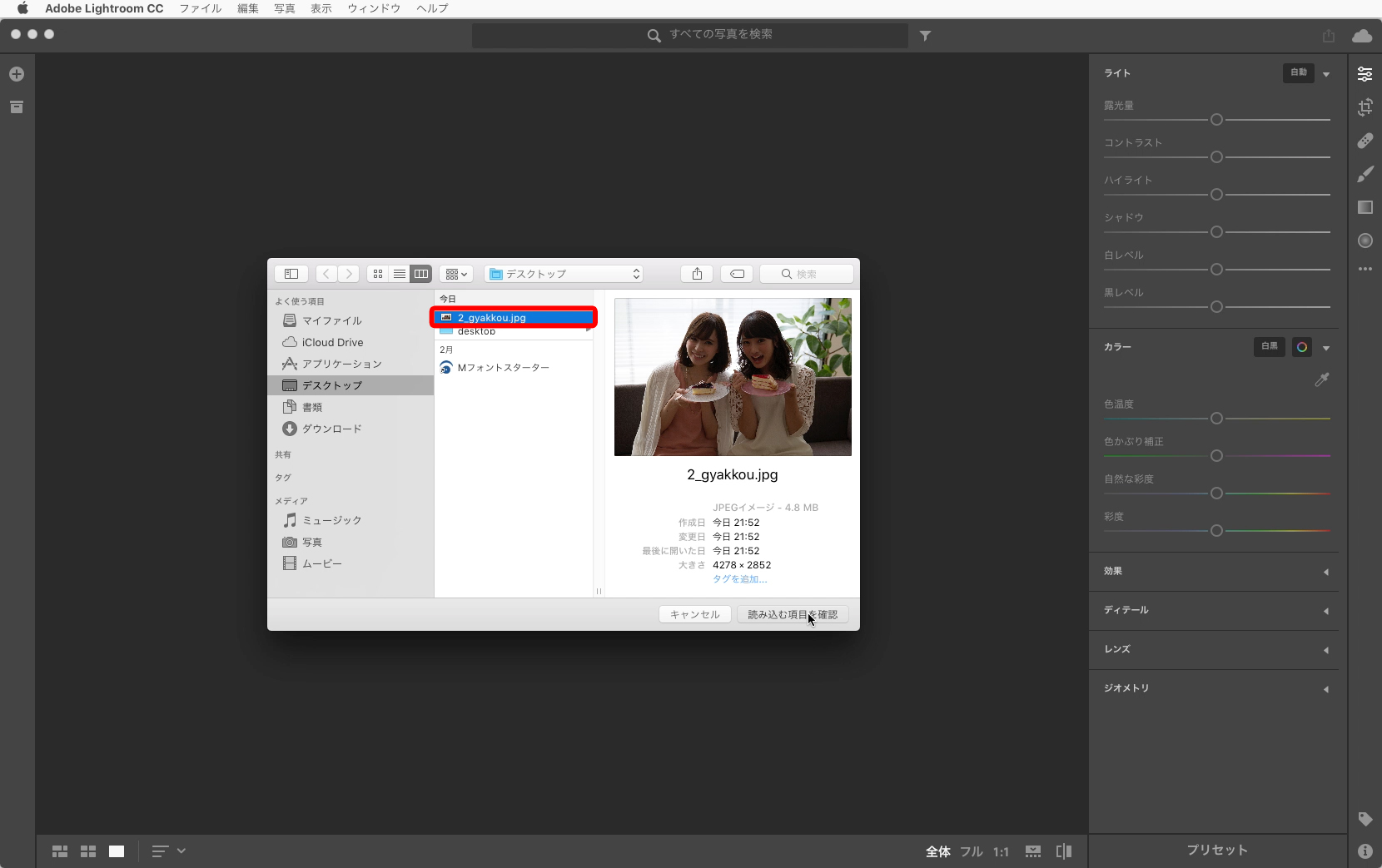 読み込みたい写真を選択し、[読み込む項目を確認]をクリックします。