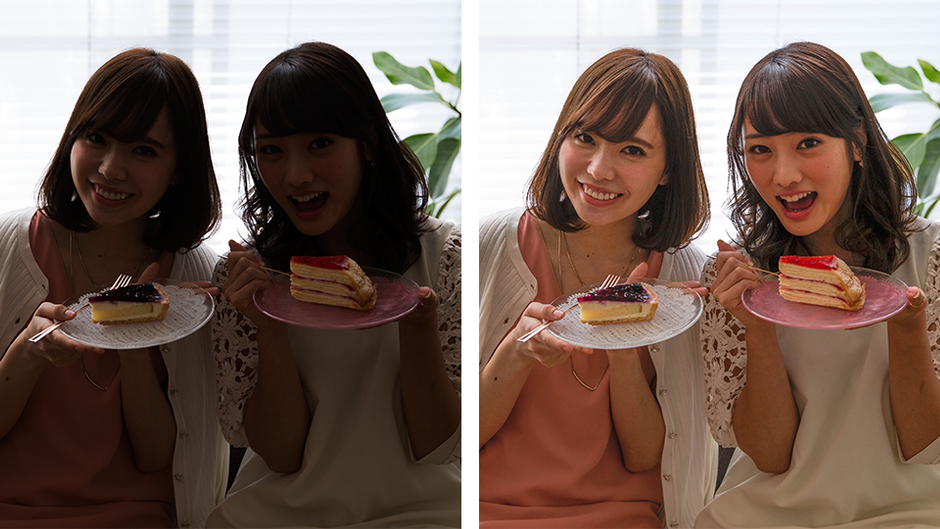 逆光で暗くなってしまった被写体(人物)を明るくします。