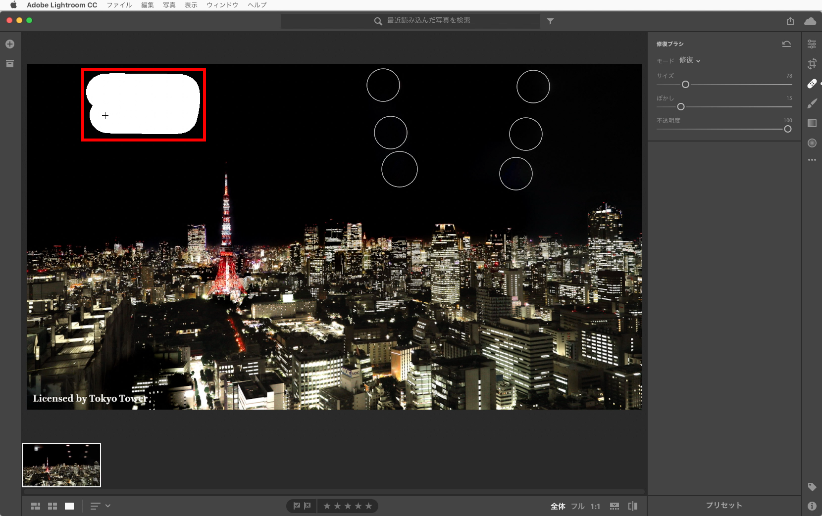 修復したい箇所でドラッグすると、Lightroomが修復する際に参考にするエリアを探し出します。
