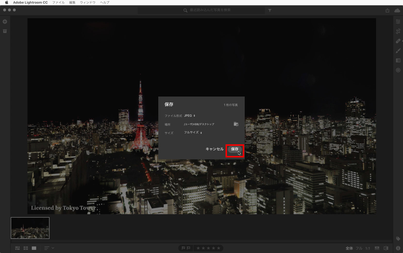 保存ダイアログボックスから、ファイル形式、場所、サイズを指定し、[保存]をクリックします。