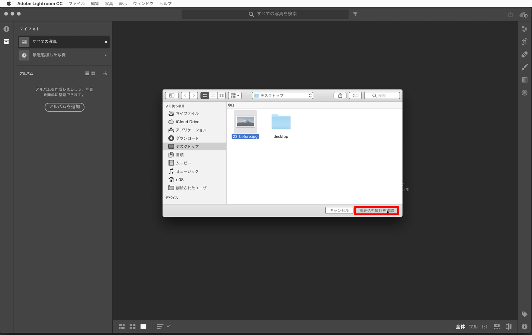 読み込みたい写真を選択し、[読み込む項目を確認]をクリックします。