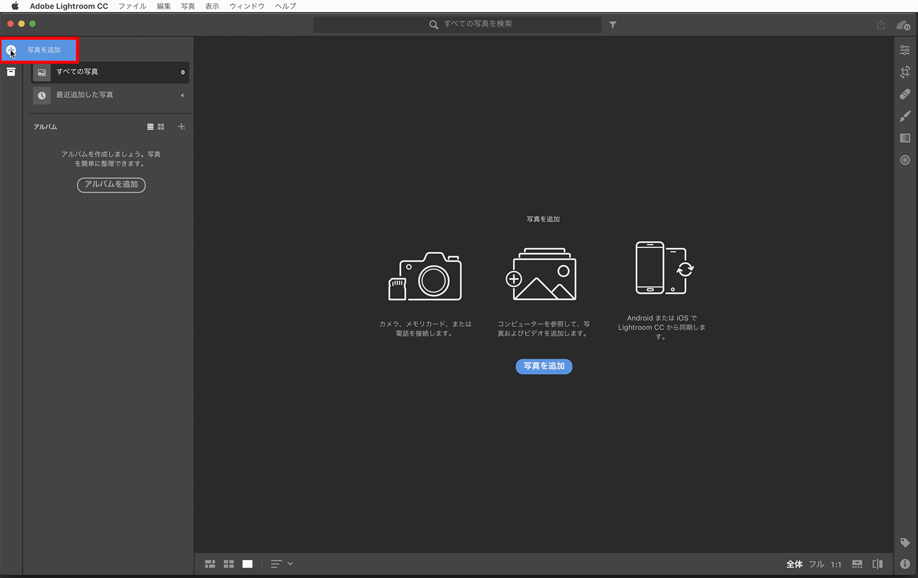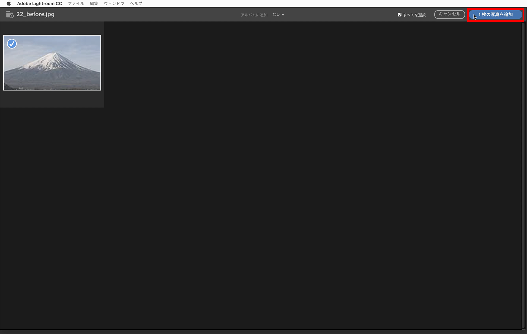 編集したい写真が選択できたら、右上にある[1枚の写真を追加]ボタンをクリックします。
