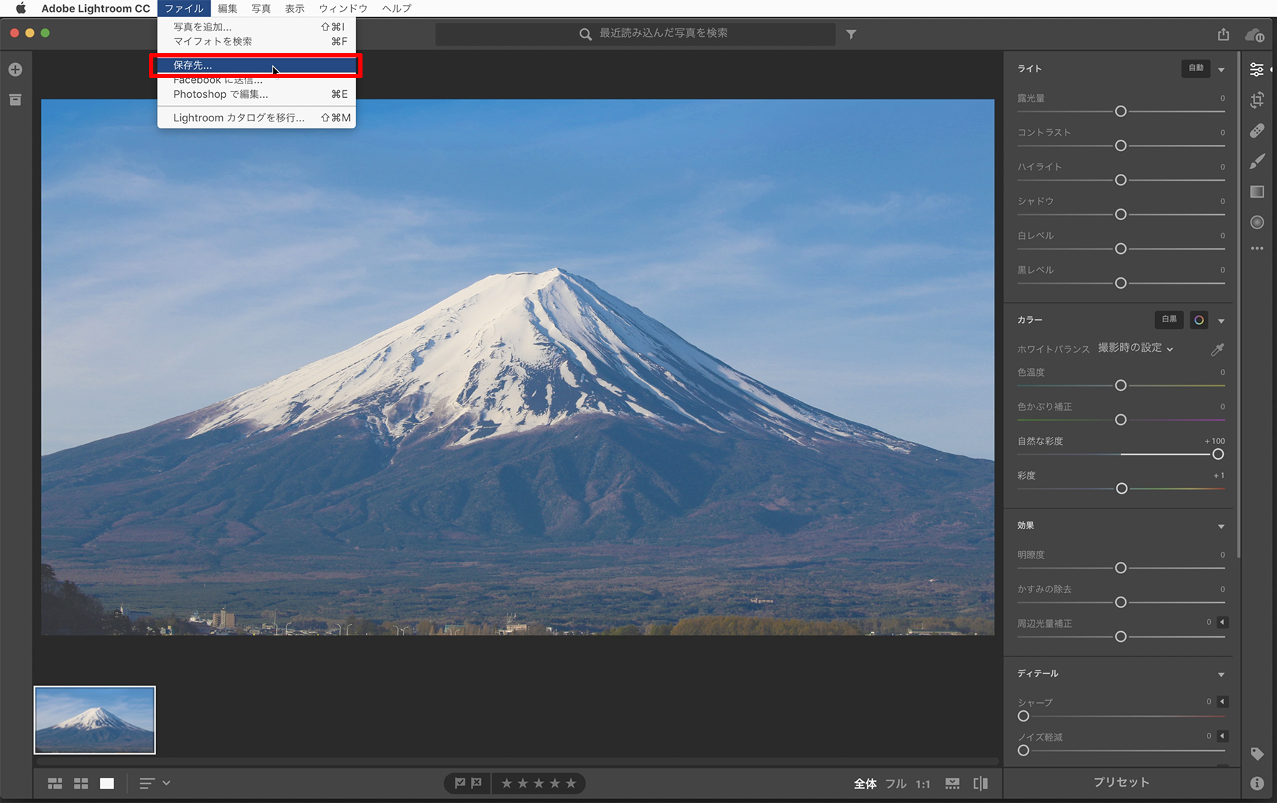メニューバーから[ファイル]→[保存先…]をクリックします。