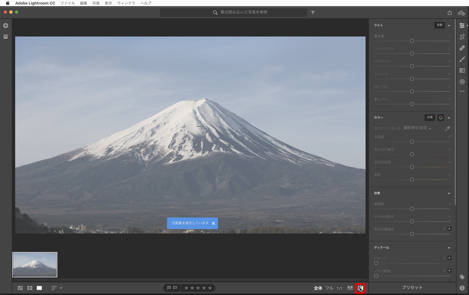 下パネル右側の元画像(/)を表示をクリックすると、元の画像に表示が切り替わります。