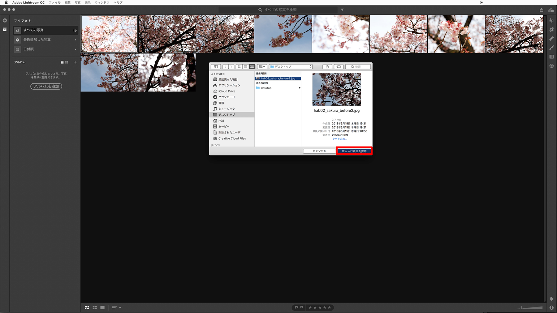 読み込みたい写真を選択し、[読み込む項目を確認]をクリックします。