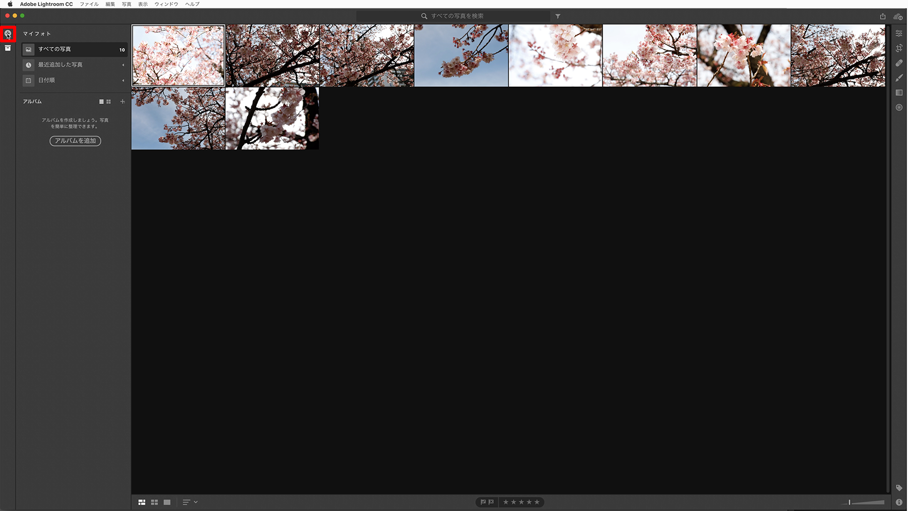 (上パネルの[アルバムに追加]→[新規]からアルバムを作成することで、写真の整理、管理が簡単に行えます。)
