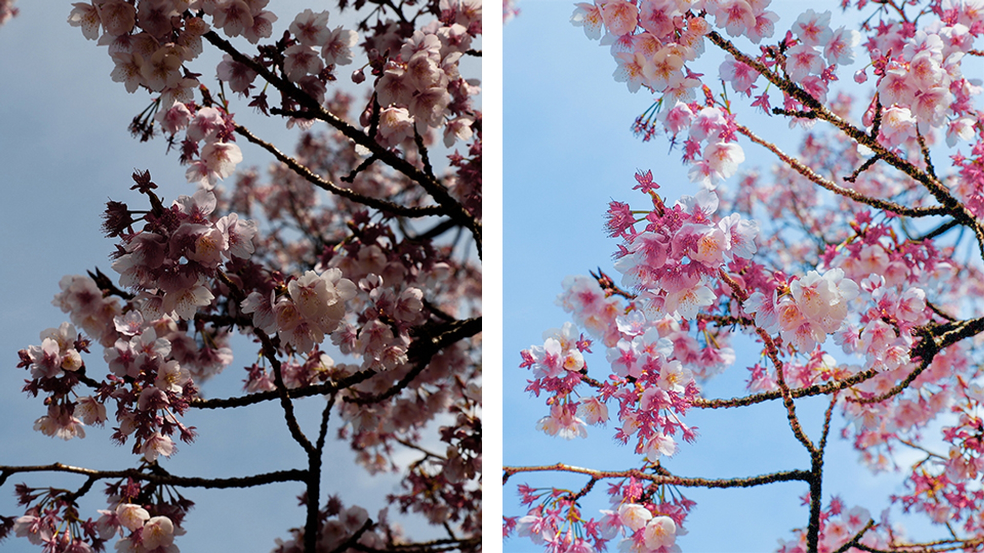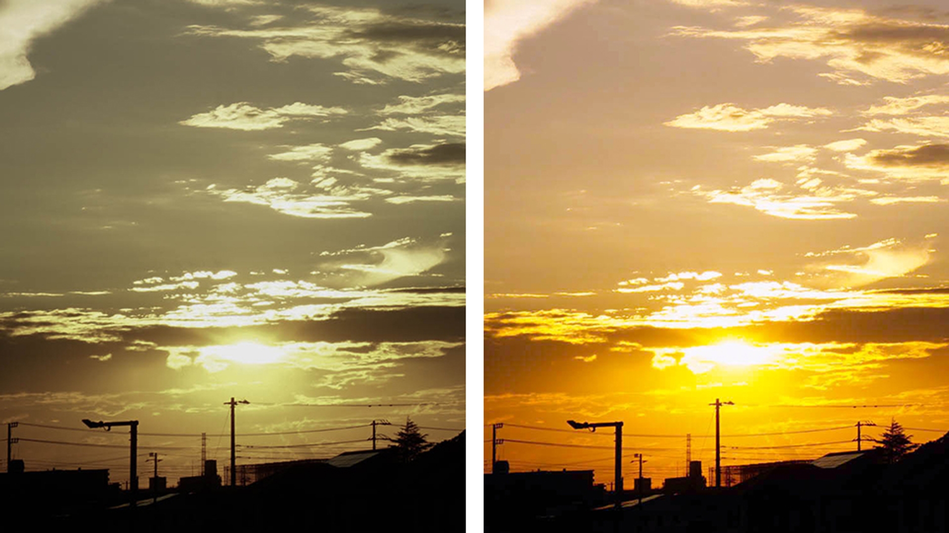 自然な彩度は、主に鮮やかさの過不足を調整し、全体の色の鮮やかさを均一に近づけてくれる機能です。