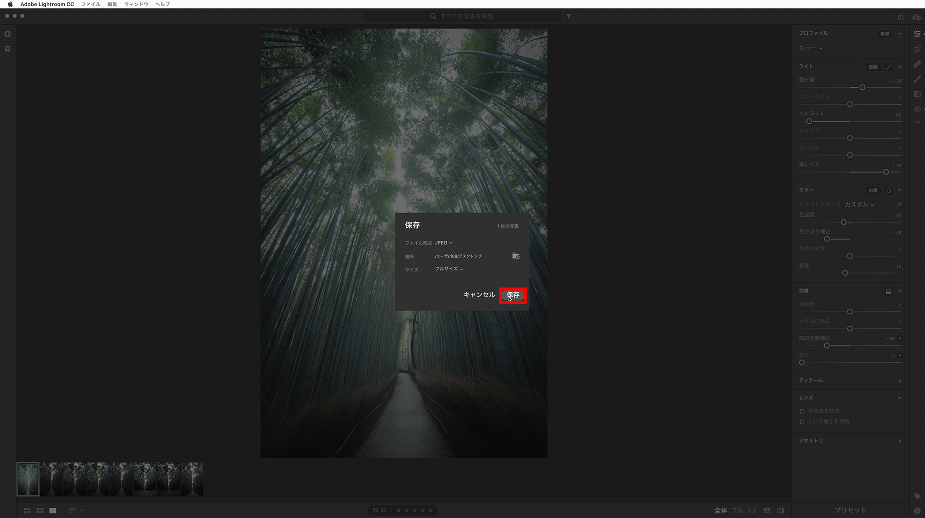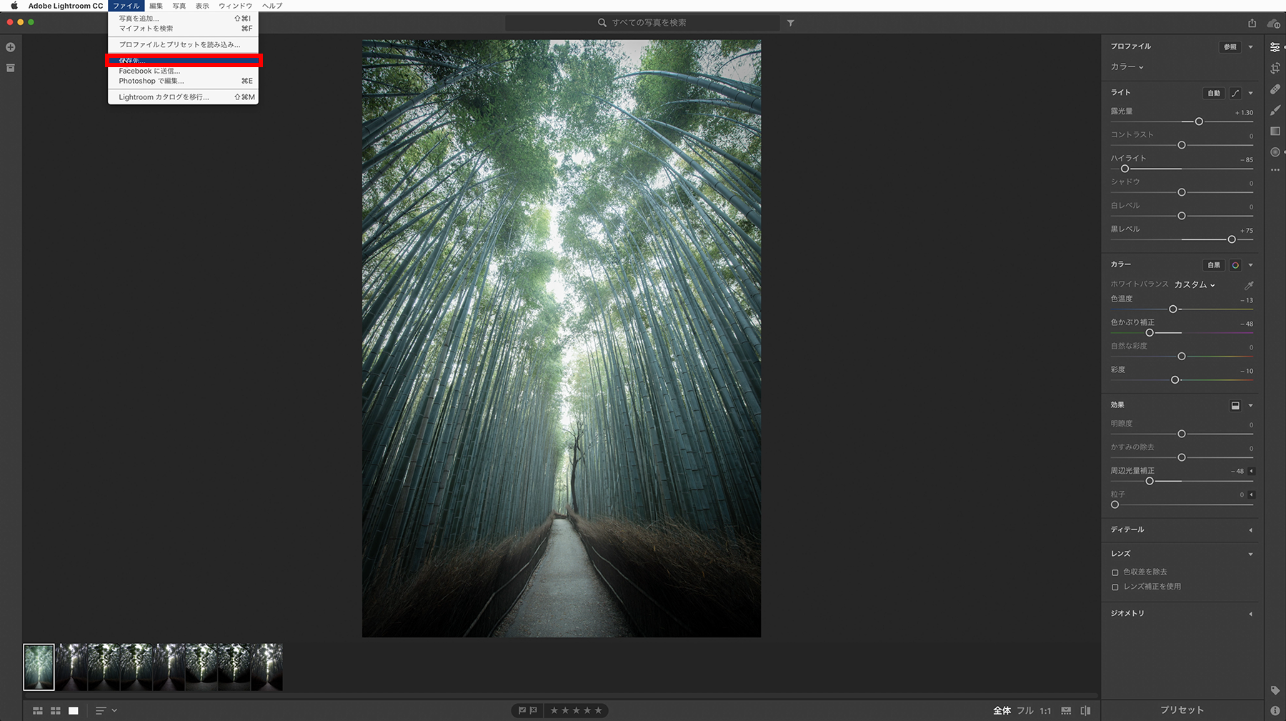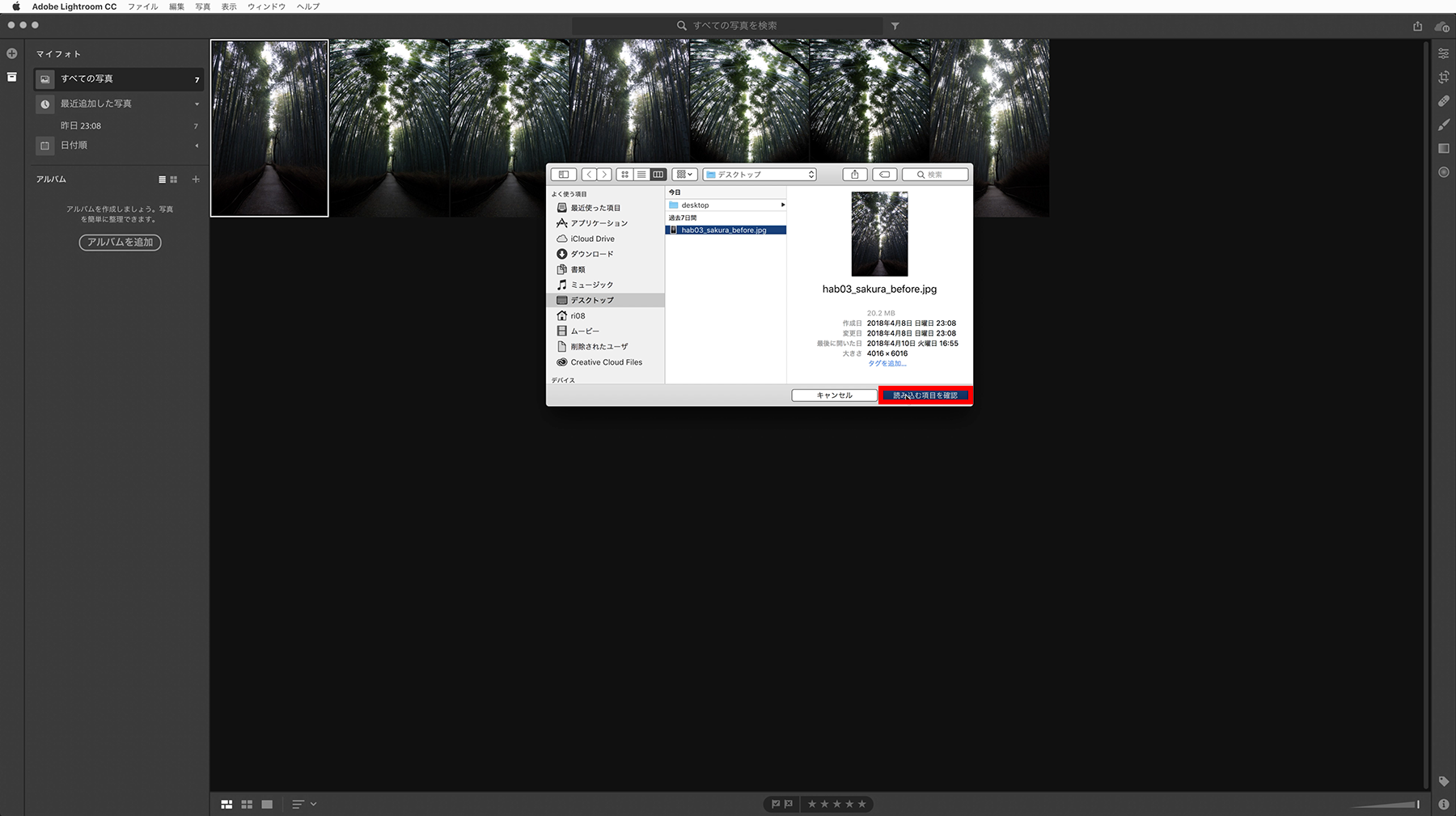 Lightroomを起動し、写真を読み込みます。