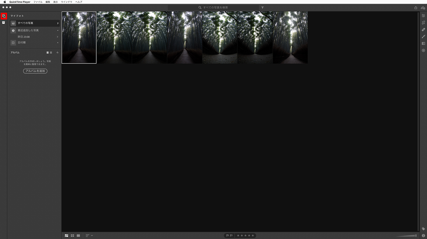 (上パネルの[アルバムに追加]→[新規]からアルバムを作成することで、写真の整理、管理が簡単に行えます。)