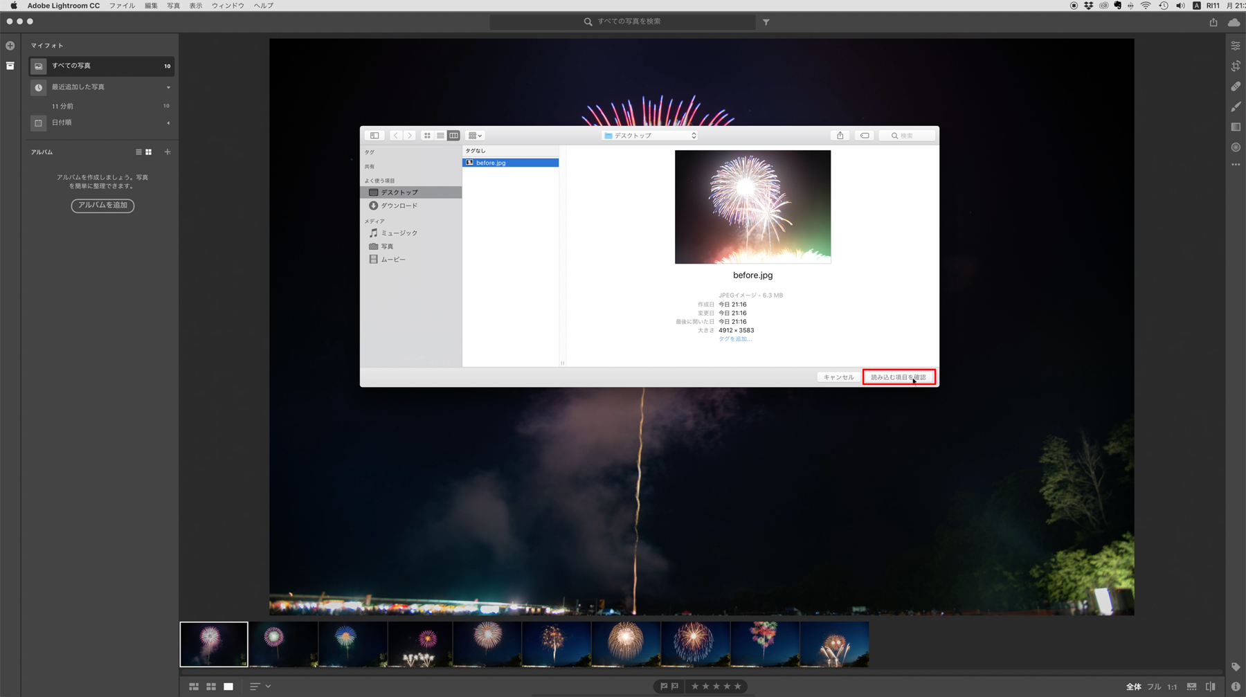 読み込みたい写真を選択し、[読み込む項目を確認]をクリックします。