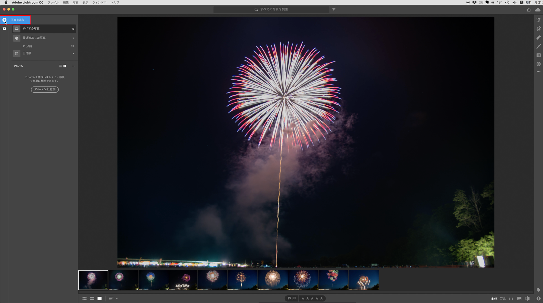 (上パネルの[アルバムに追加]→[新規]からアルバムを作成することで、写真の整理、管理が簡単に行えます。)