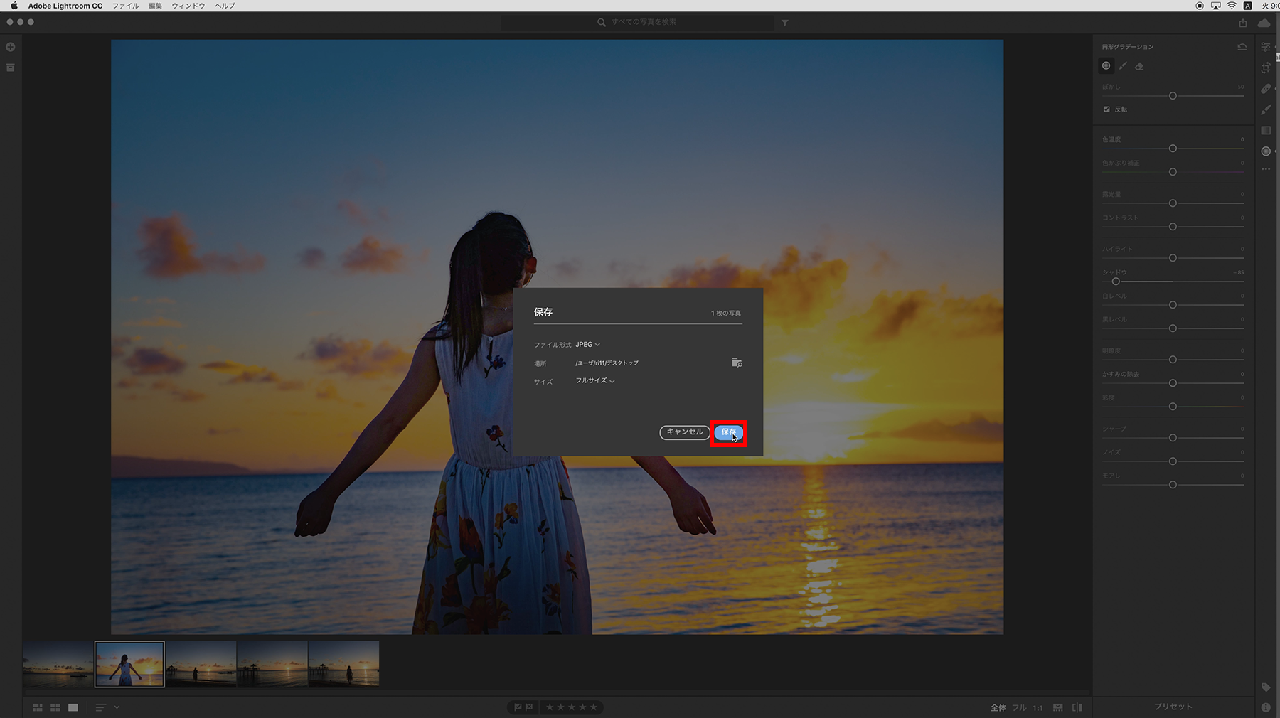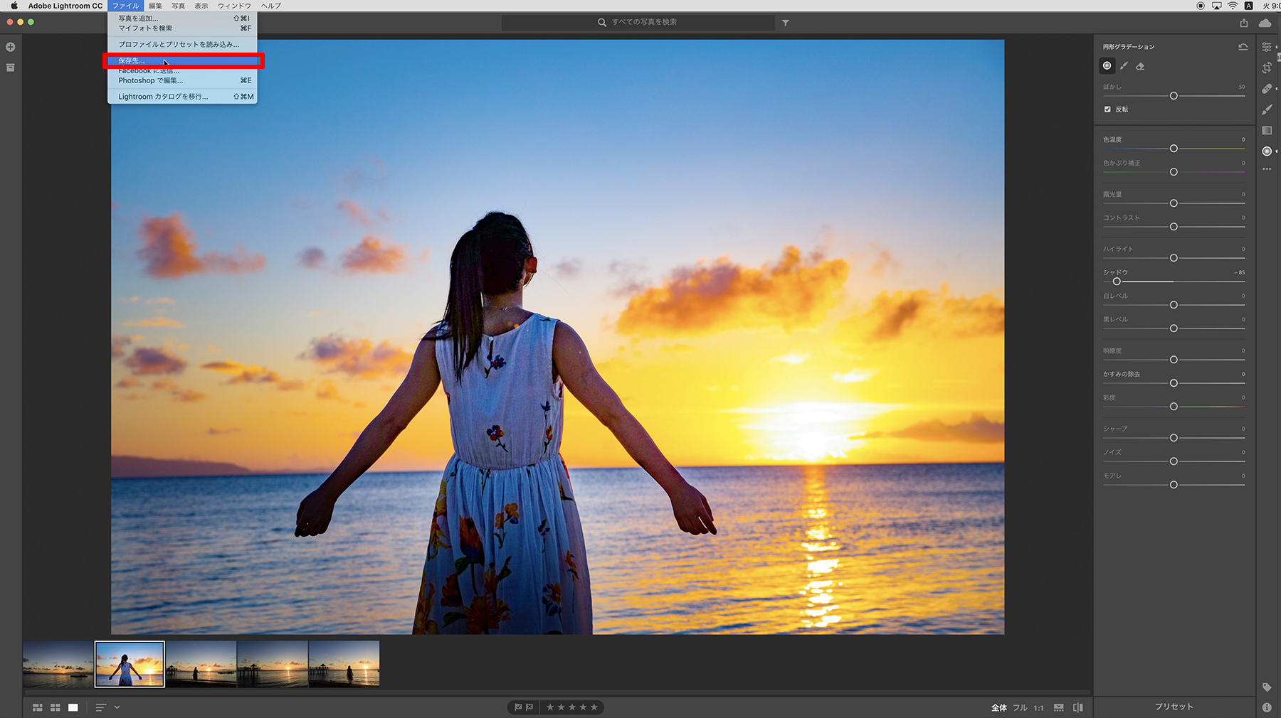 Lightroomを使って、色の調整を行うことで、夕陽の情景を印象的に仕上げることができます。