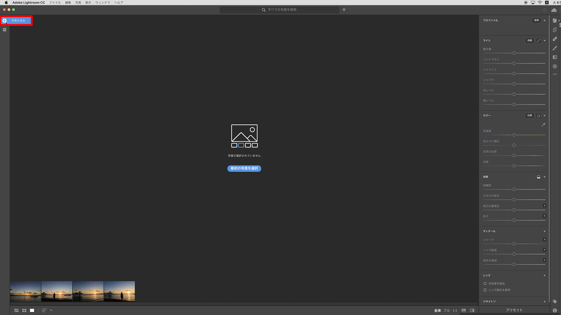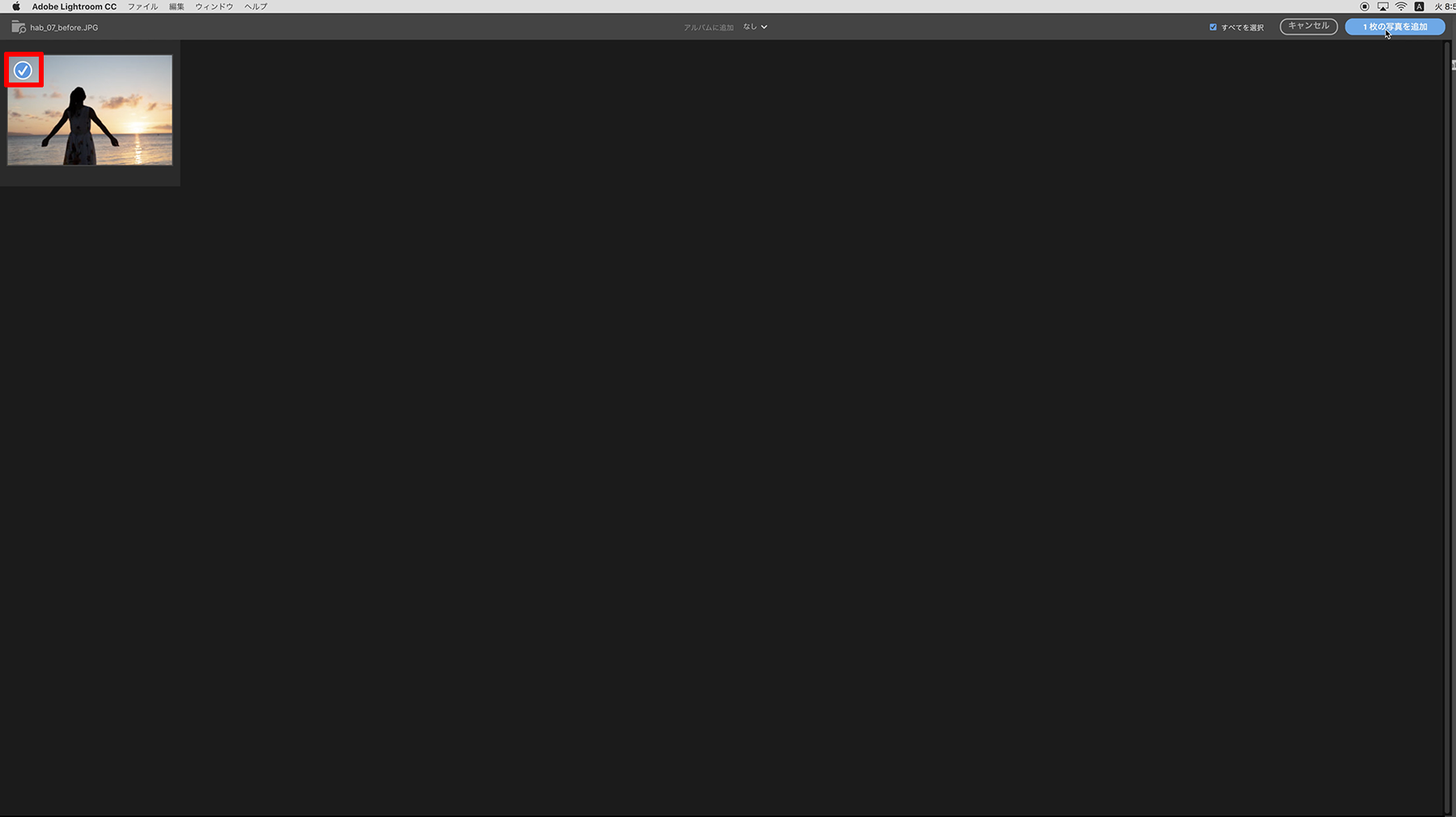 チェックマークがついていない場合は、サムネイルの左上をクリックすることで写真が選択され、青いチェックマークがつきます。