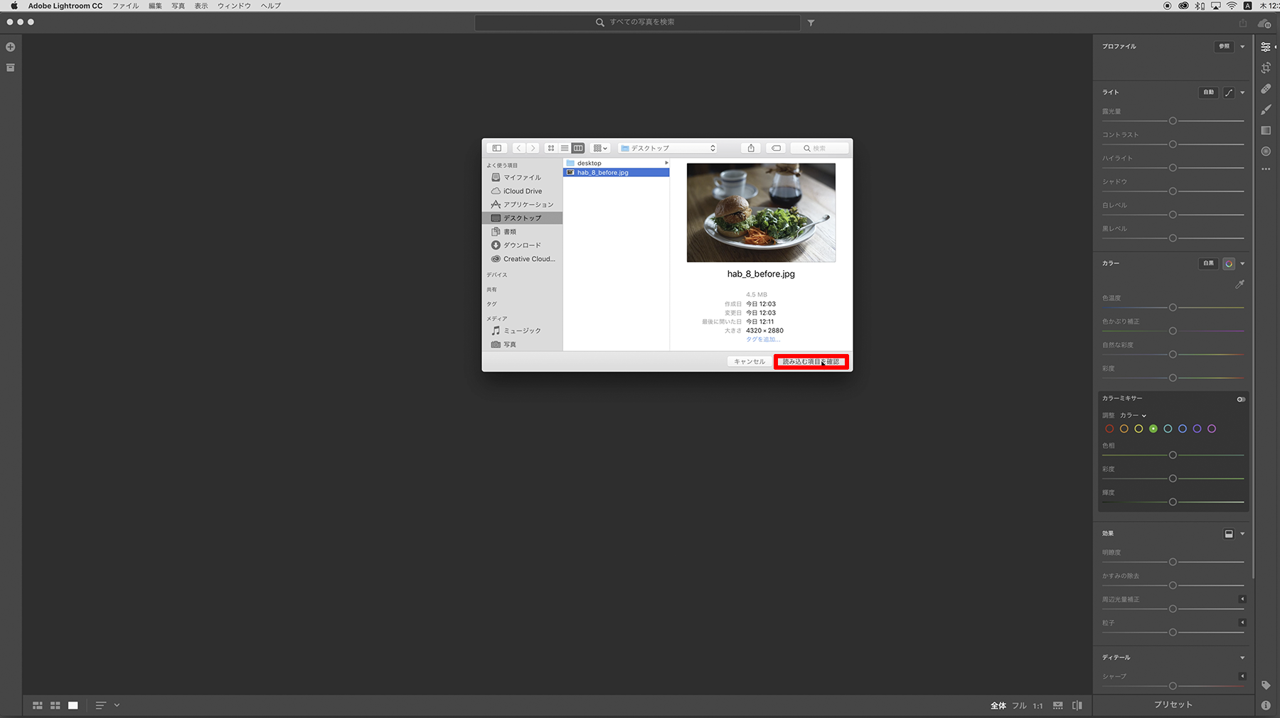 読み込みたい写真を選択し、[読み込む項目を確認]をクリックします。