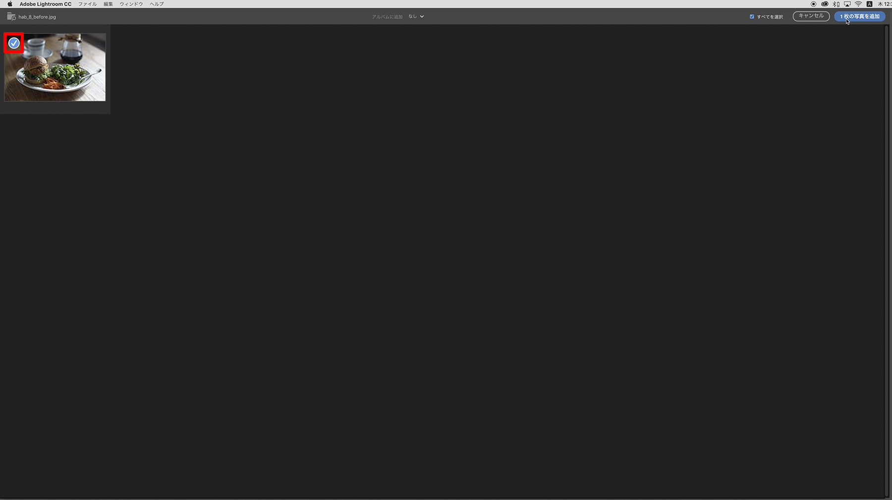 チェックマークがついていない場合は、サムネイルの左上をクリックすることで写真が選択され、青いチェックマークがつきます。