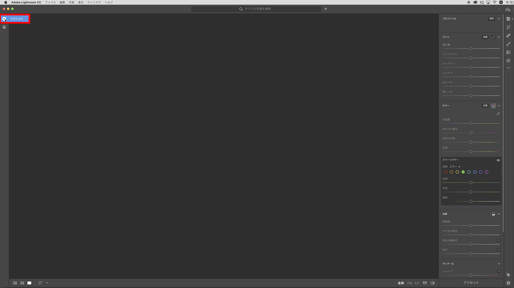 編集したい写真が選択できたら、右上にある[1枚の写真を追加]ボタンをクリックします。
