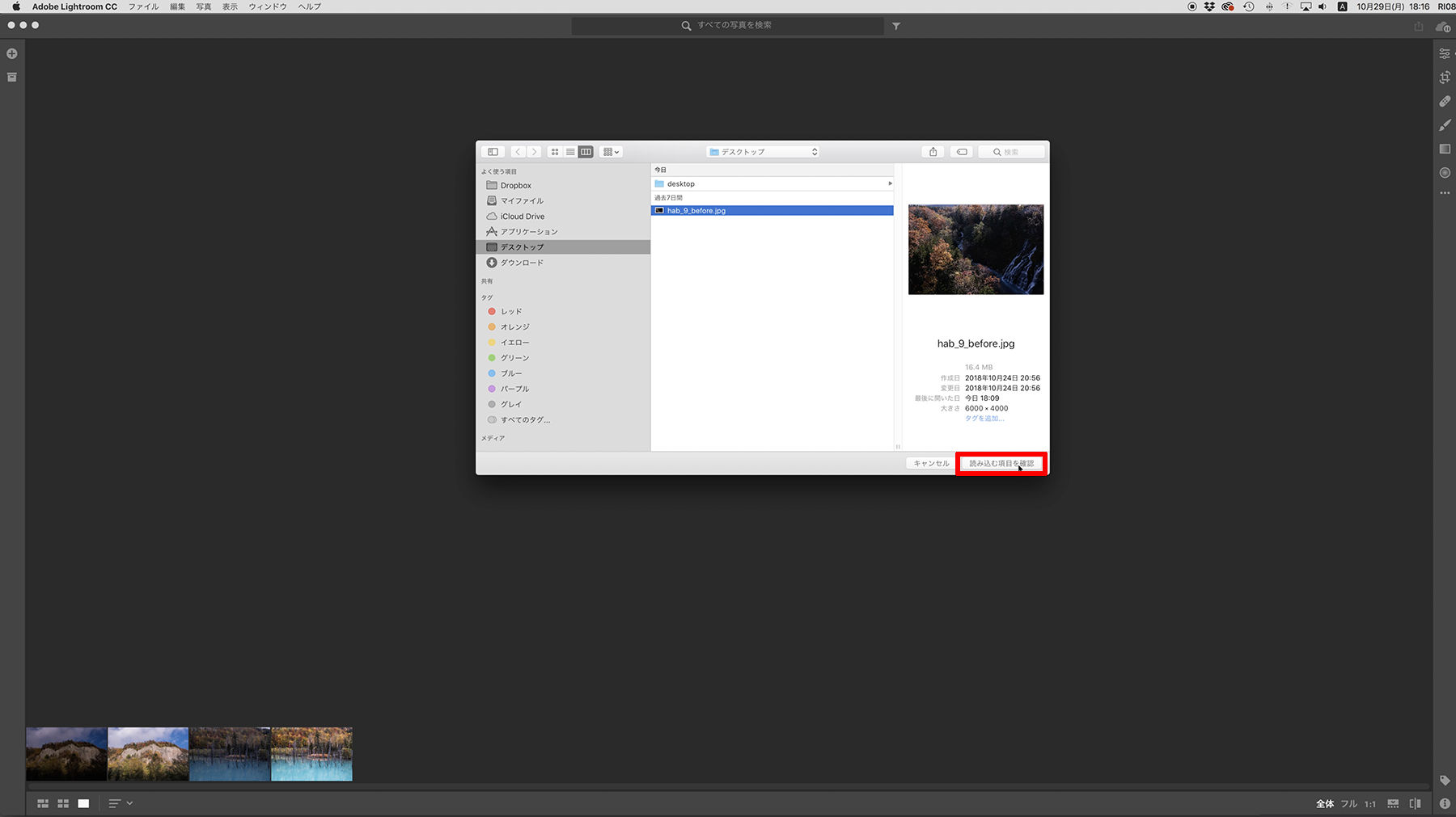 読み込みたい写真を選択し、[読み込む項目を確認]をクリックします。