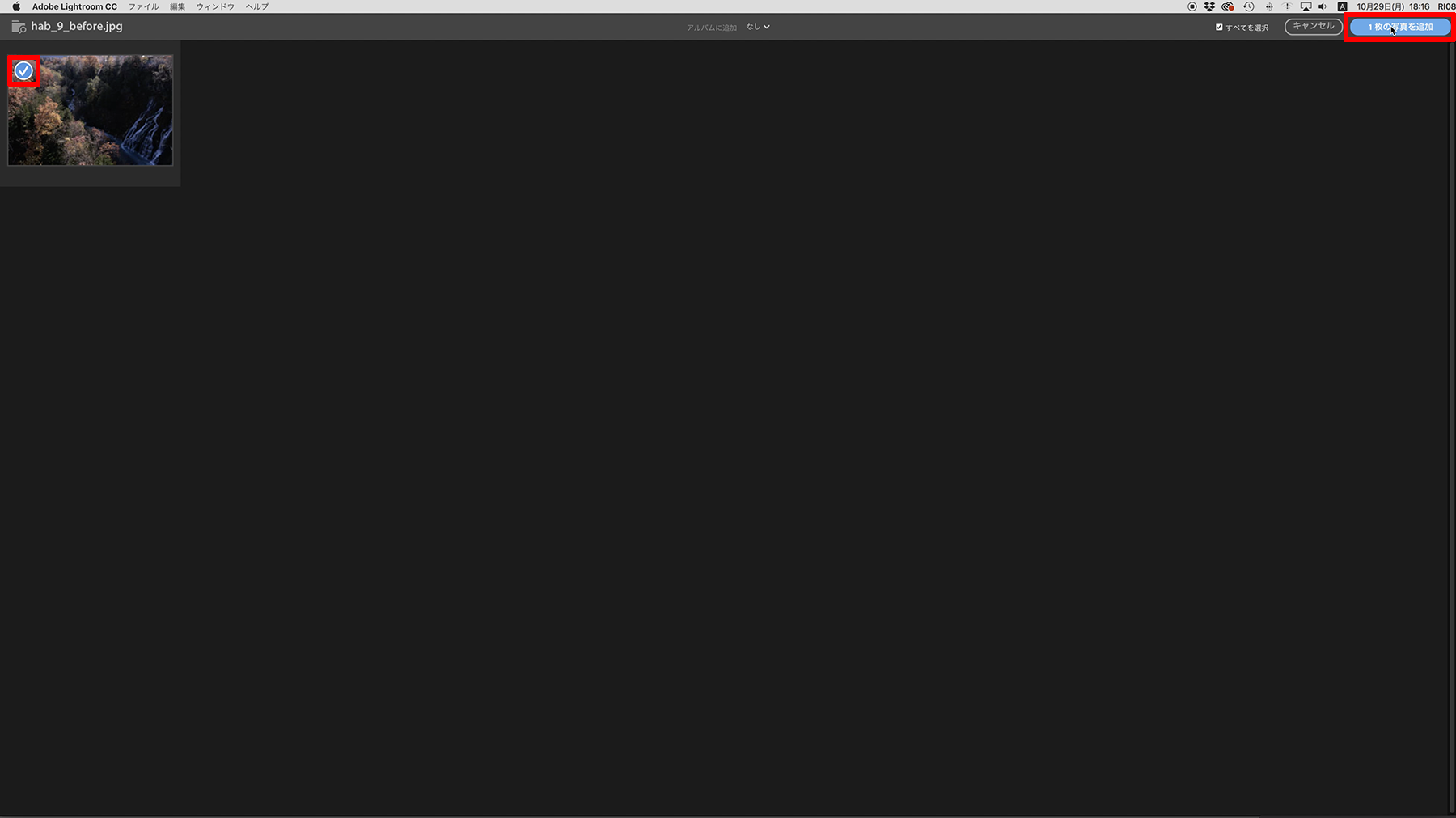 編集したい写真が選択できたら、右上にある[1枚の写真を追加]ボタンをクリックします。