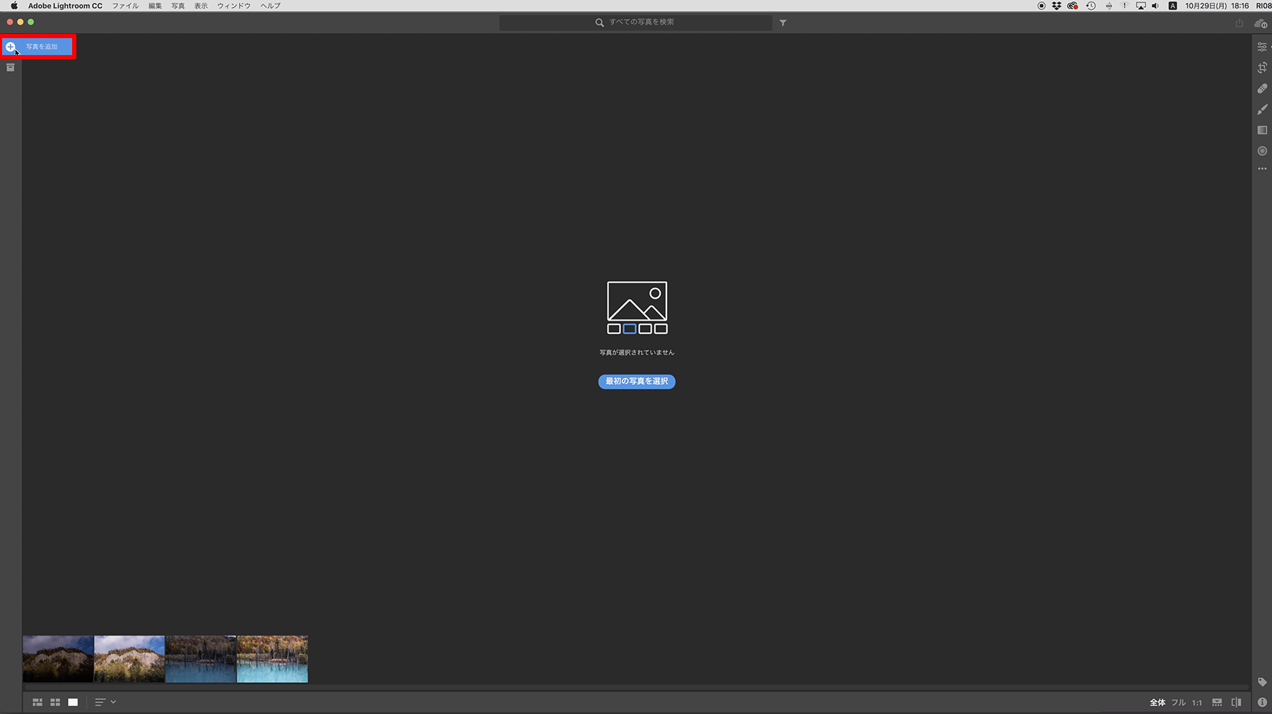 チェックマークがついていない場合は、サムネイルの左上をクリックすることで写真が選択され、青いチェックマークがつきます。