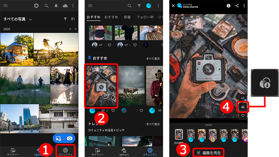 Lightroomは世界中のユーザーが作ったプリセットを閲覧したり、ダウンロードして楽しむこともできます。