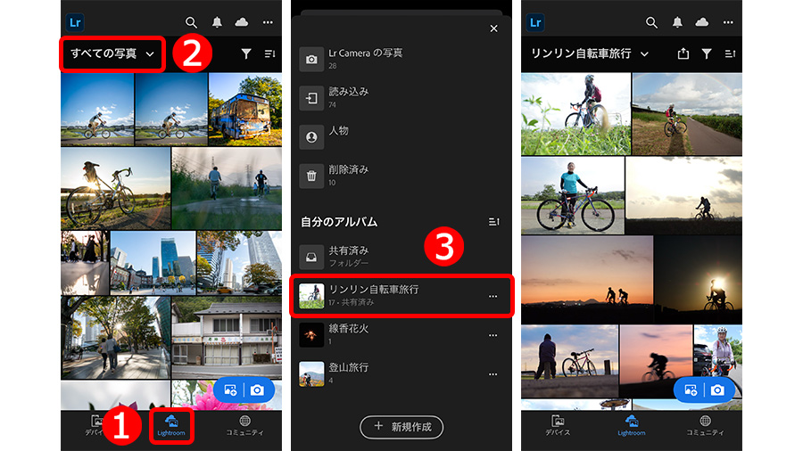 Lightroomの共有機能は、「アルバム」にまとめた写真を共有する機能です。
