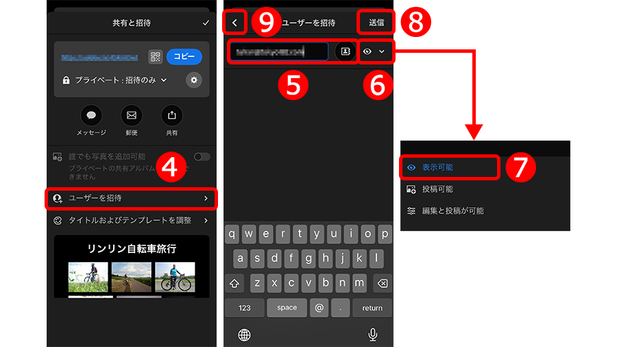 その際、招待する相手のアクセス権(共有したアルバムに対して操作できること)の設定も行えるので、合わせて紹介します。