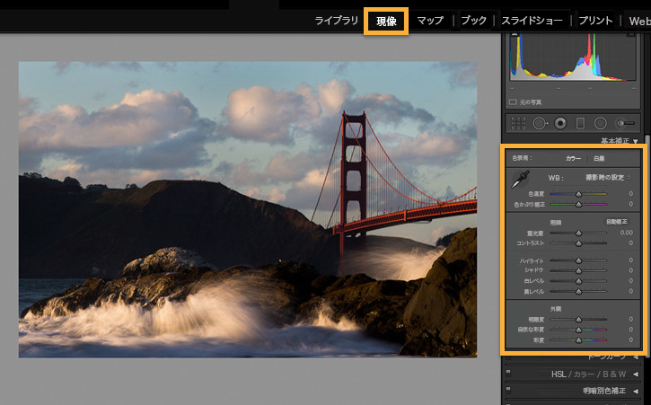コレクションを作成した後は、デスクトップのコレクションで写真を選択して現像 モジュールに切り替え、編集作業を開始します。