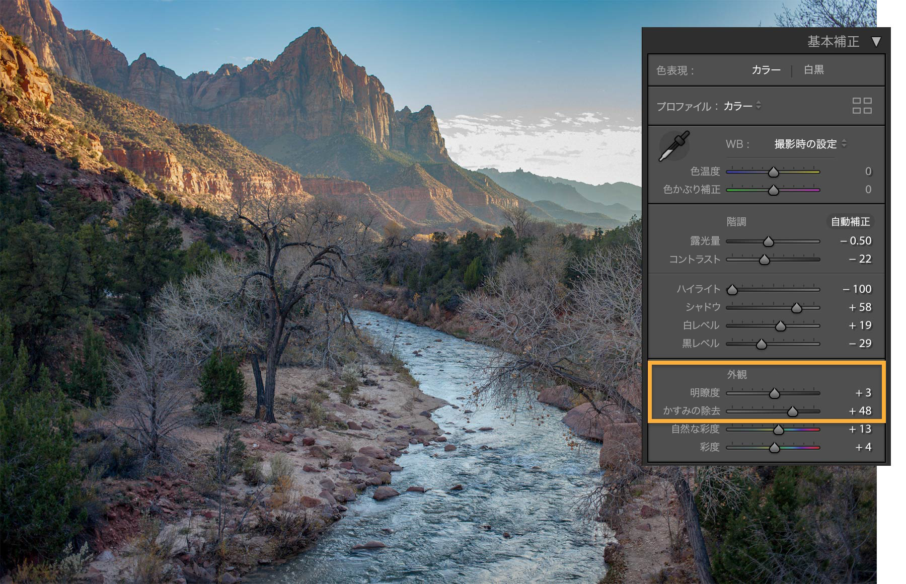 いくつかの簡単な調整をおこなうと、山々の風景がよりはっきり見えるようになります。