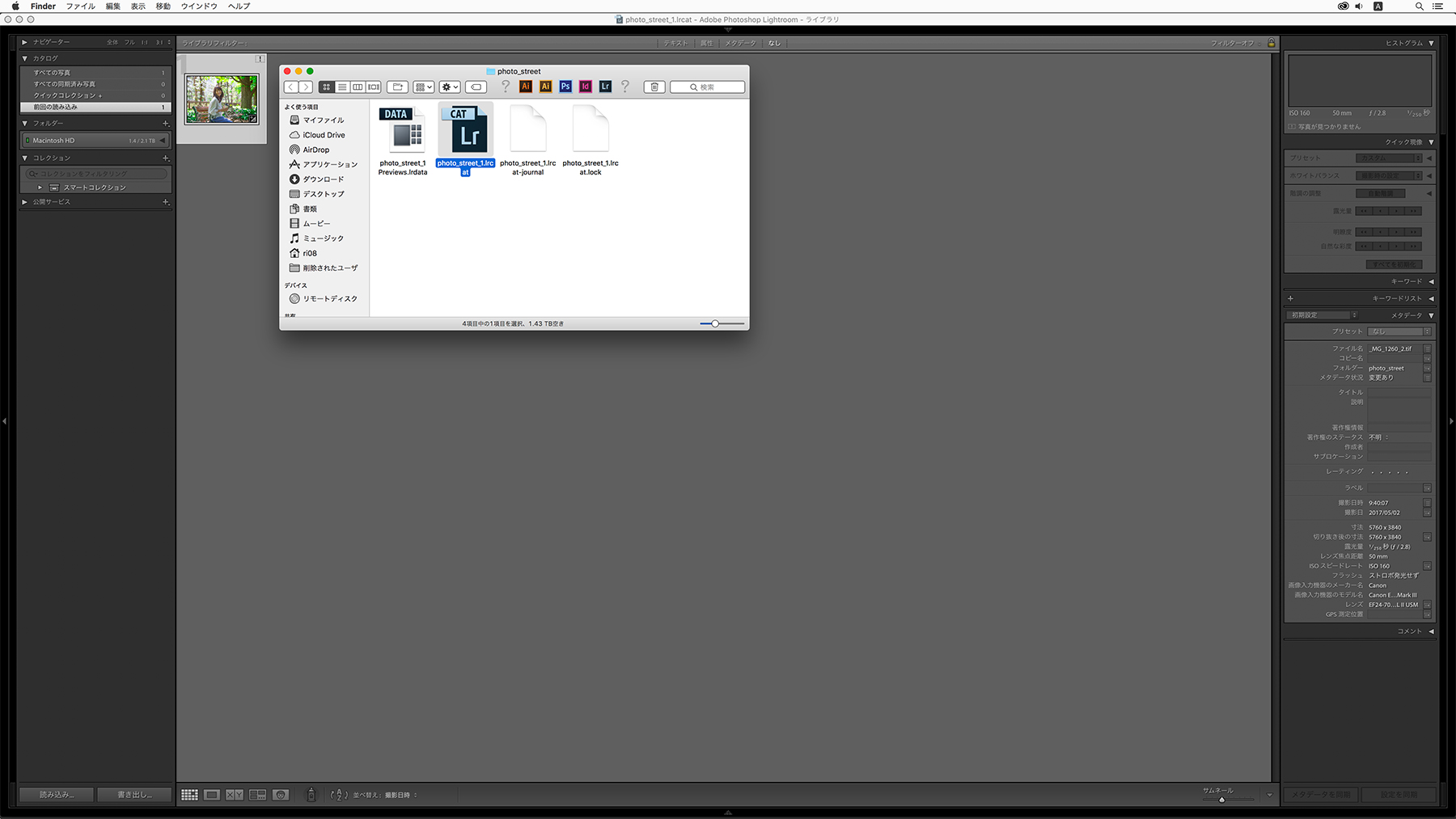 カタログとはLightroom特有の概念で、写真についての情報を保存するデータベースファイルです。Lightroomで写真に対して行ったすべての編集情報や、写真ファイルが保存されている場所などがデータとしてカタログに保存され、元の写真が編集されることはありません。カタログを作成する場合は、同じ名前のフォルダーも作成されます。