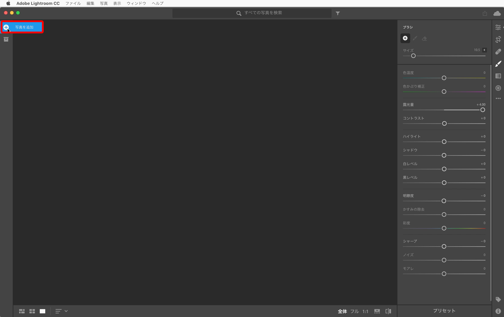 Lightroom CCを起動し、写真を読み込みます。