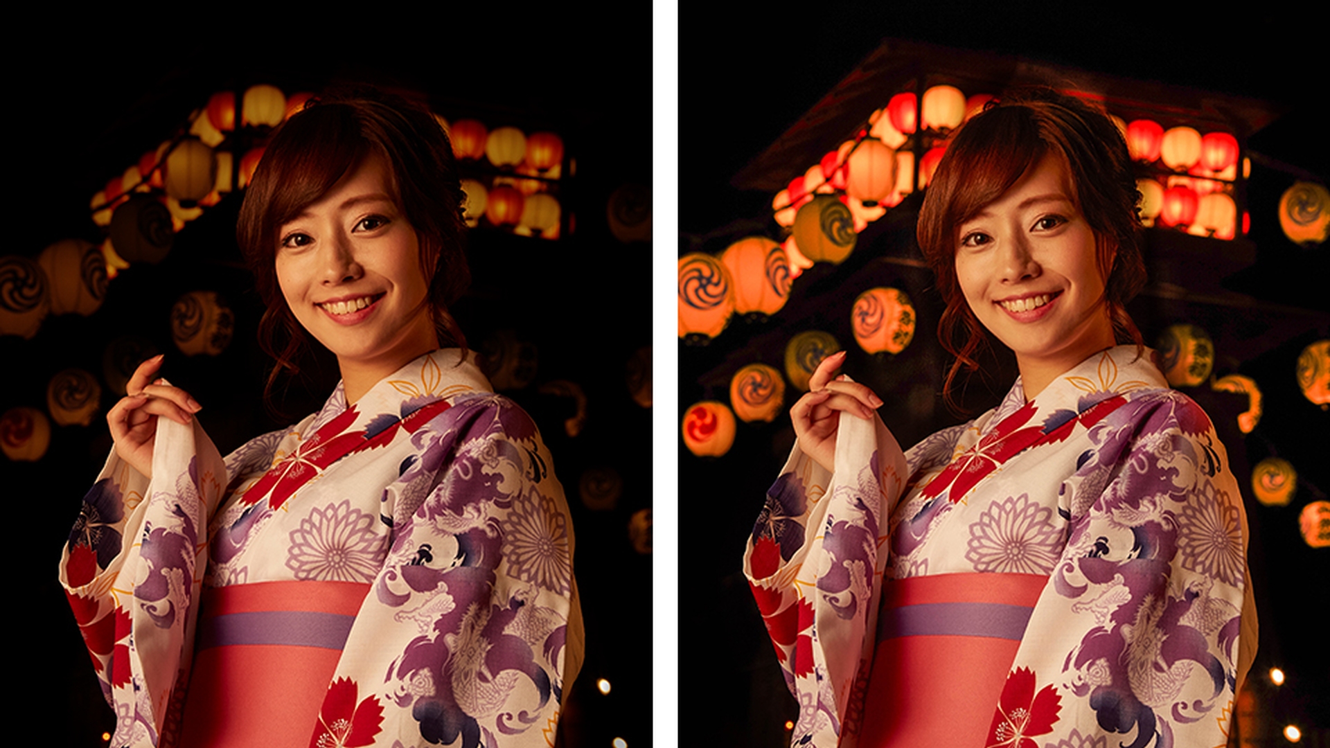 全体が明るくなり、背景の提灯も少し見えるようになりました。