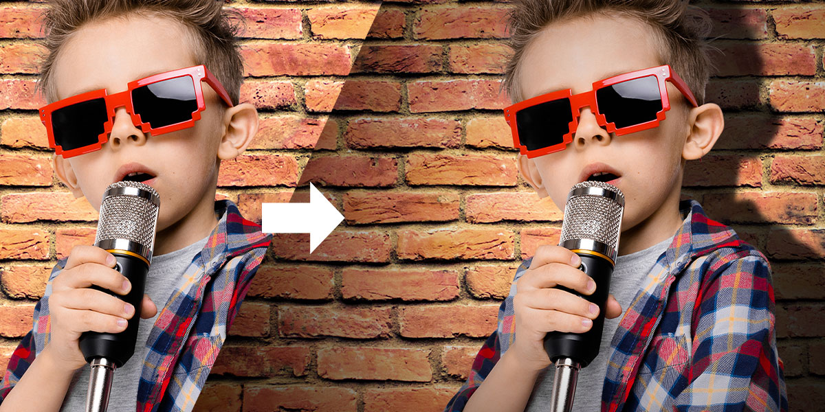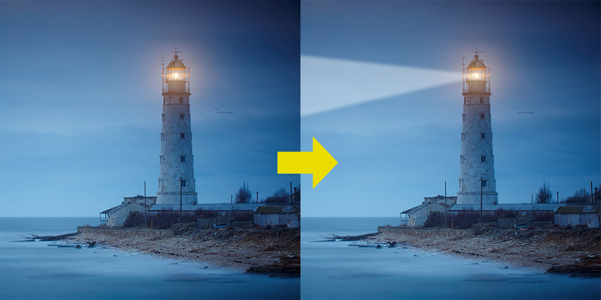 グラデーションマップ補正レイヤーとレイヤーマスクを使用して、青と赤の照明効果を作成します。