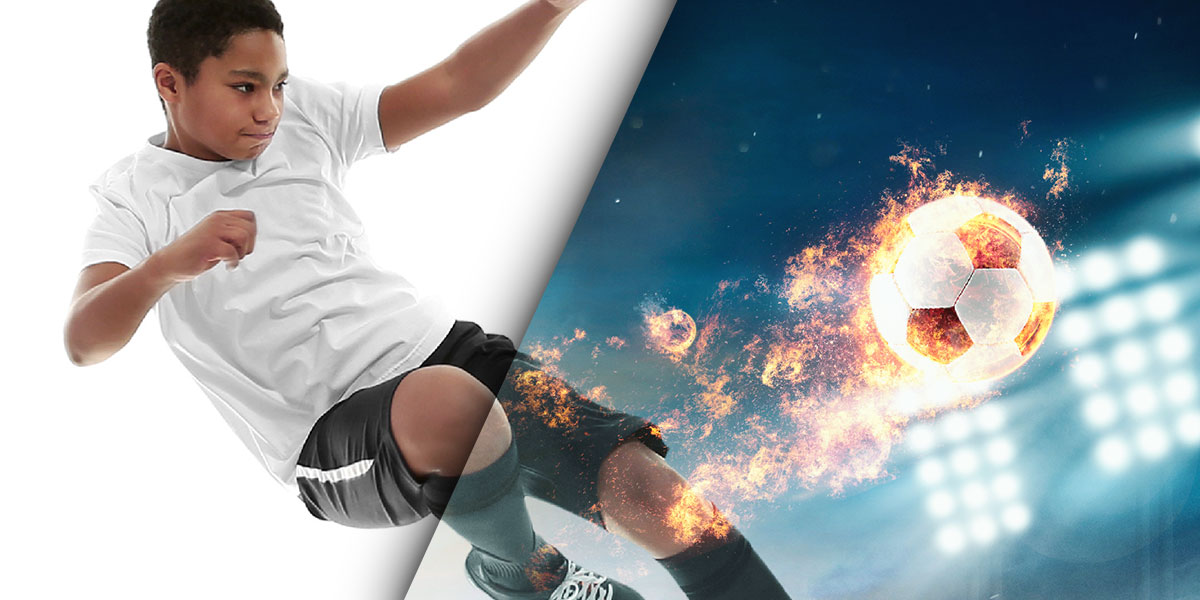 描画モードを利用して、炎などのエフェクトを組み合わせたインパクトのあるグラフィックを作成します。