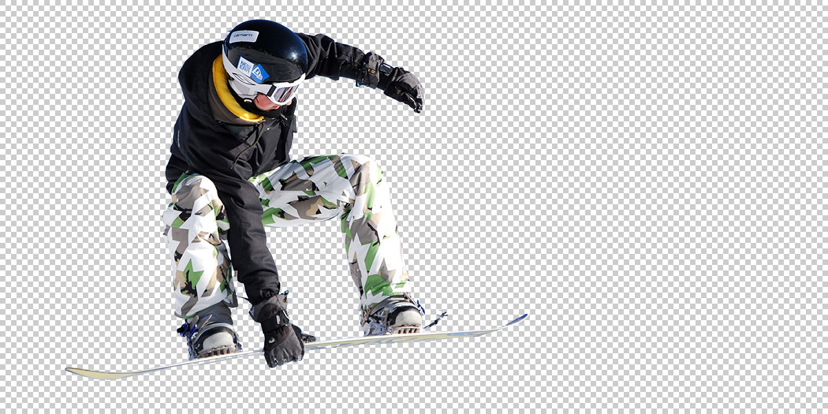 自動選択ツールを使用して、シンプルな背景の中にいるスノーボーダーを選択し、レイヤーマスクで元の背景を削除します。