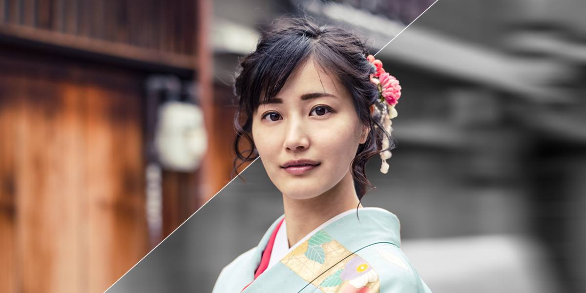 背景をぼかして彩度を落とす事で、人物を浮き立たせて印象的な写真を作ります。