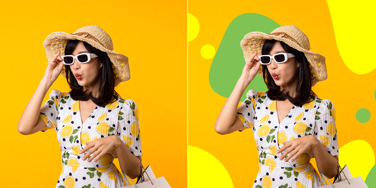 ハーフトーン(ドット)を人物写真に合成したビジュアルを作成します。