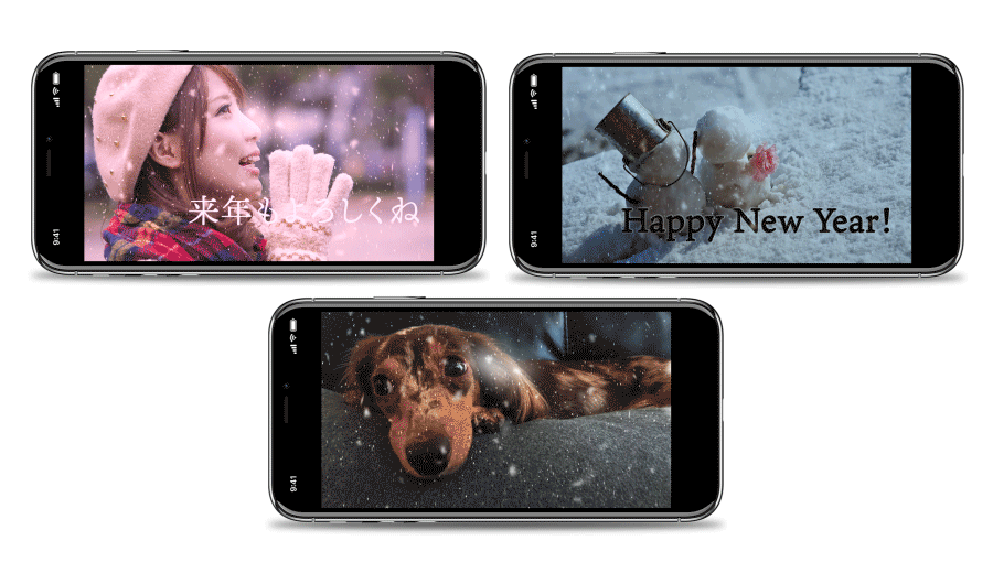 書き出したファイルをブラウザーなどで確認してみましょう。粉雪が降り積もるロマンチックなデジタル年賀状が完成しました。