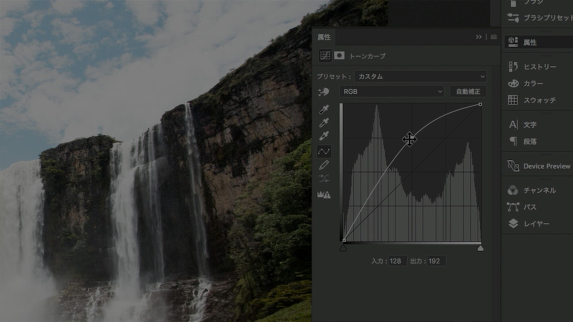 「トーンカーブ」を使用した色補正はよく行われる作業のひとつです。ぜひマスターしてください。