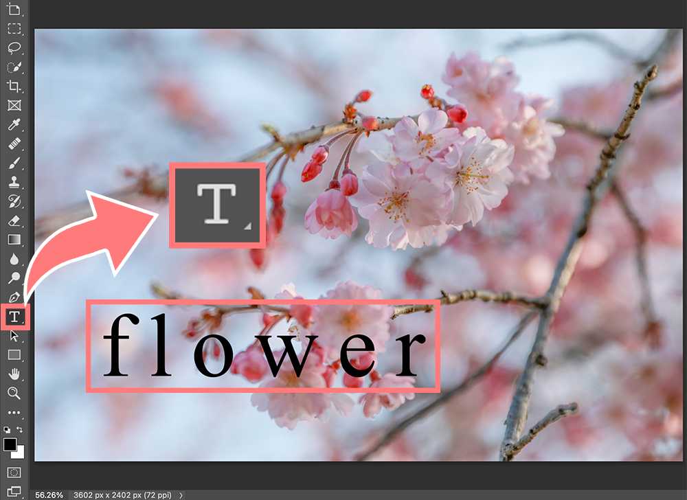 まず文字を書きたいときは、横書き文字ツールをクリックして、キャンバス上をクリックして、タイピングしていきます。